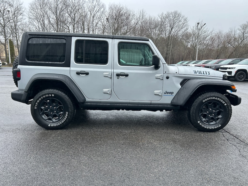 Freedom Panel Storage Bag, Rear Window Defroster, Rear Window Wiper/Washer, Heated Steering Wheel, Remote Start System, Heated Front Seats, Universal Garage Door Opener, Engine: 2.0L I4 DOHC DI Turbo PHEV, Transmission: 8-Speed Auto 8P75PH PHEV, Willys, 4xe 4-Wheel Drive Swing Gate Decal, Willys 4xe Hood Decal, Black Grille, MOPAR All-Weather Floor Mats, Rock Protection Sill Rails, 97 MPH Vehicle Max Speed Calibration, Anti-Spin Differential Rear Axle, Molded-In-Color Fender Flares (2-Piece), Front LED Fog Lamps, LED Premium Reflector Headlamps, LED Headlamp & Fog Lamp Group, (STD), (STD). MP3 Player, Privacy Glass, Keyless Entry, Steering Wheel Controls.